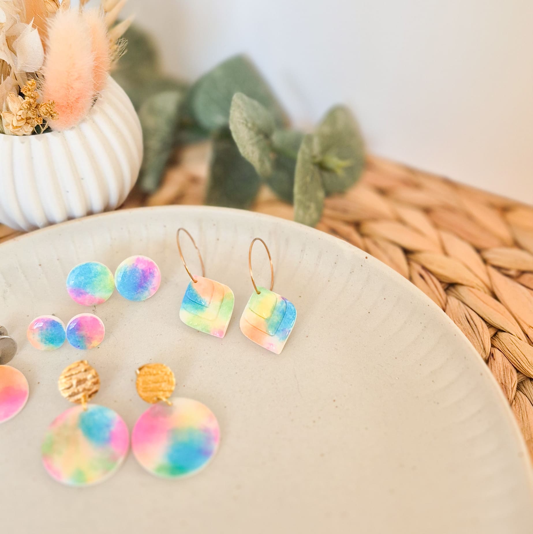 Die farbigen Elemente sind aus Polymer-Ton hergestellt, vielen von der Marke FIMO bekannt. Polymer-Ton ist unglaublich vielseitig und vor allem super leicht, was dir einen hohen Tragekomfort beschert.
