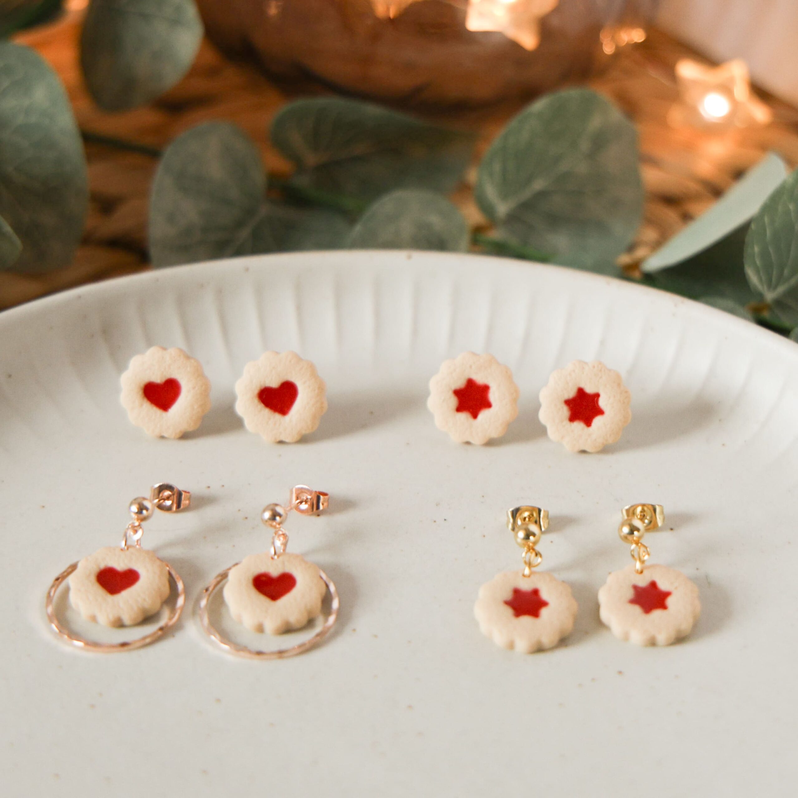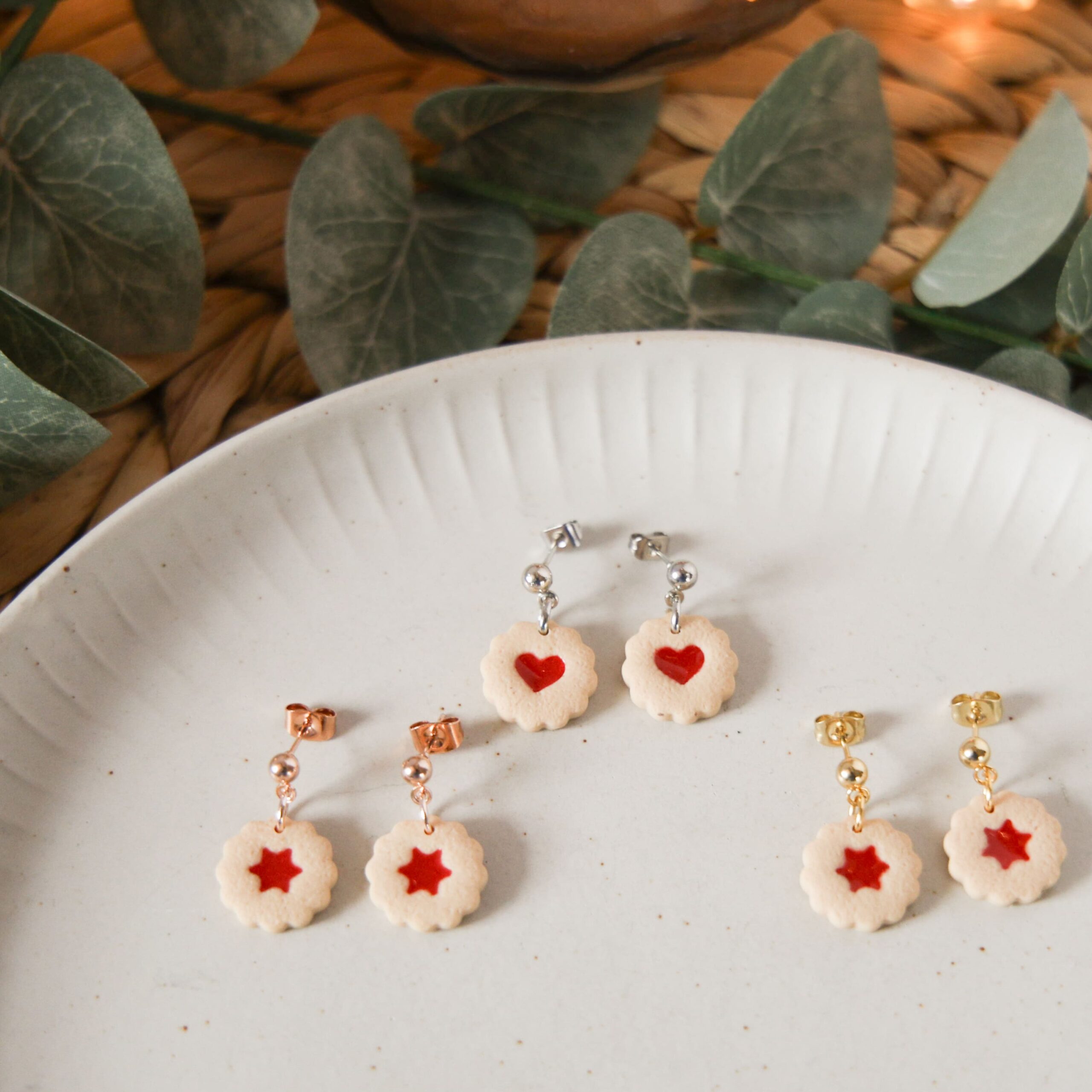 Deine Lieblingskekse zu Weihnachten sind Hilda-Plätzchen? Jetzt kannst du sie auch ganz ohne Kalorien „genießen“ und deine Ohren damit schmücken! Du kannst zwischen Stern- und Herz-Motiv wählen und es gibt eine schlichte und eine Statement-Version mit glitzerndem Zierring.