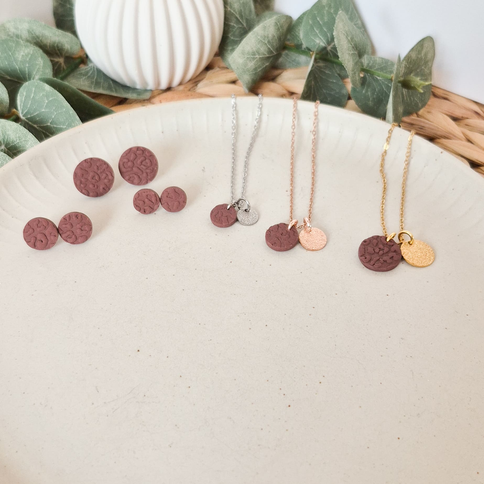 Die farbigen Elemente sind aus Polymer-Ton hergestellt, vielen von der Marke FIMO bekannt. Polymer-Ton ist unglaublich vielseitig und vor allem super leicht, was dir einen hohen Tragekomfort beschert.