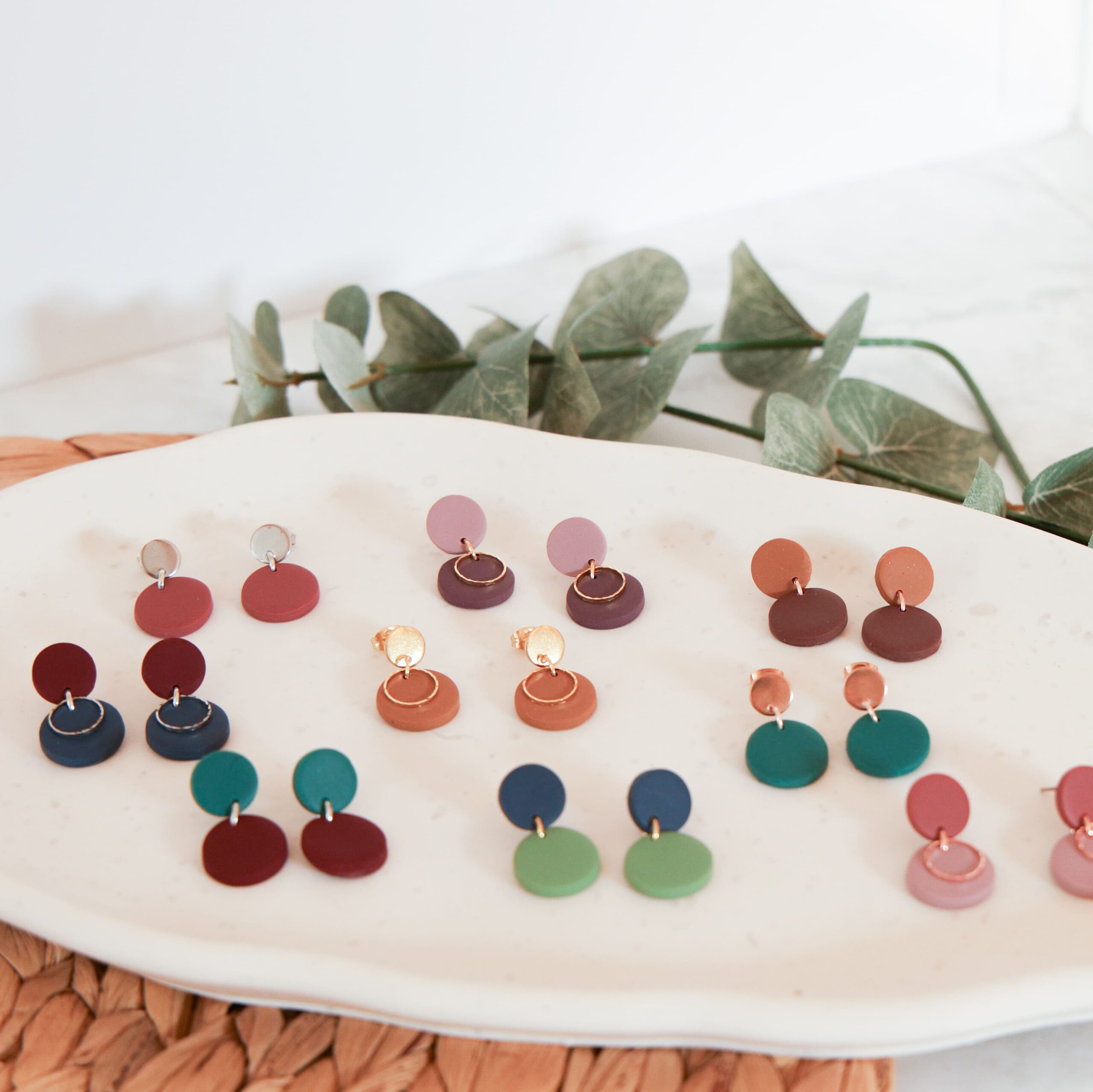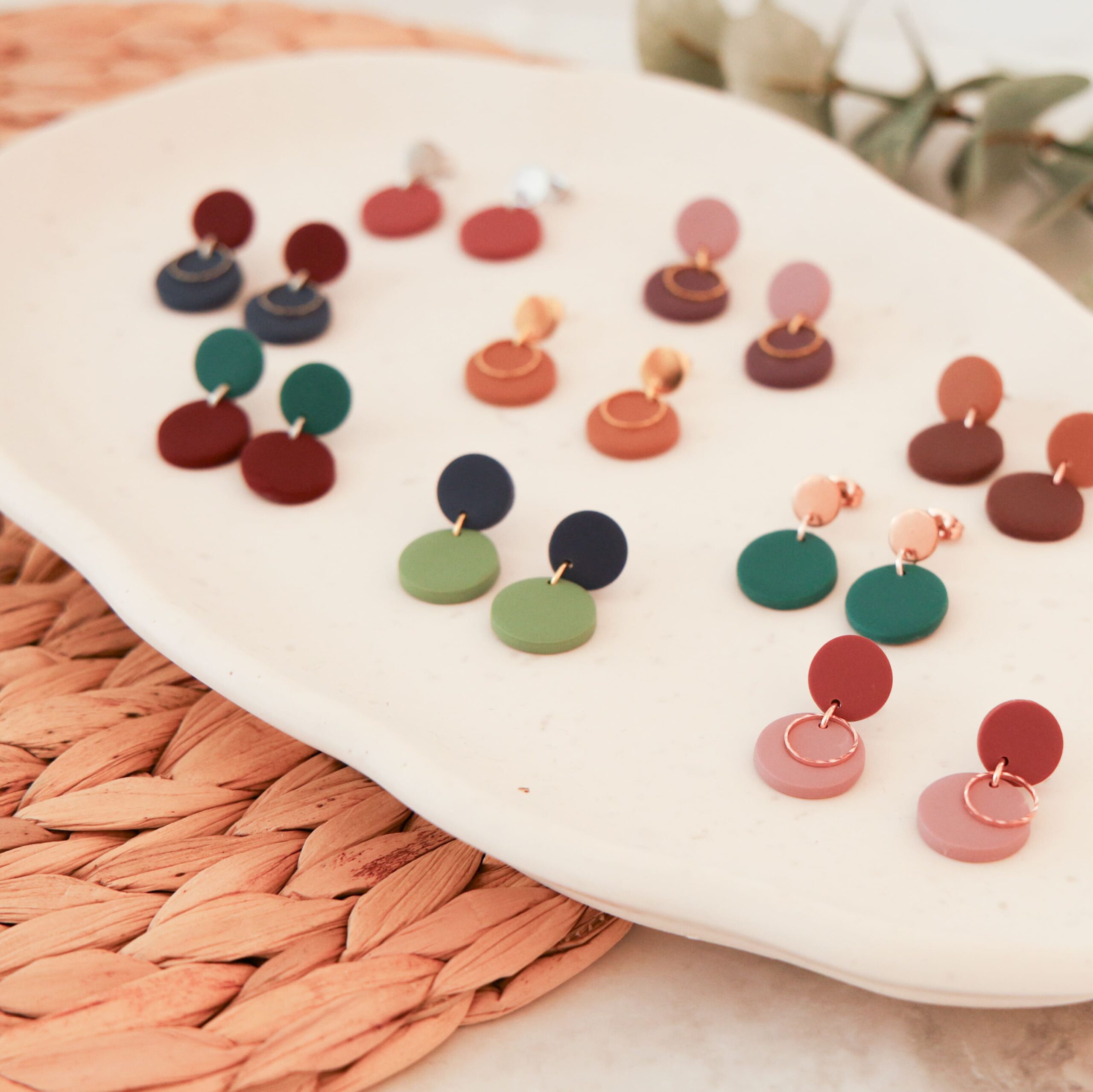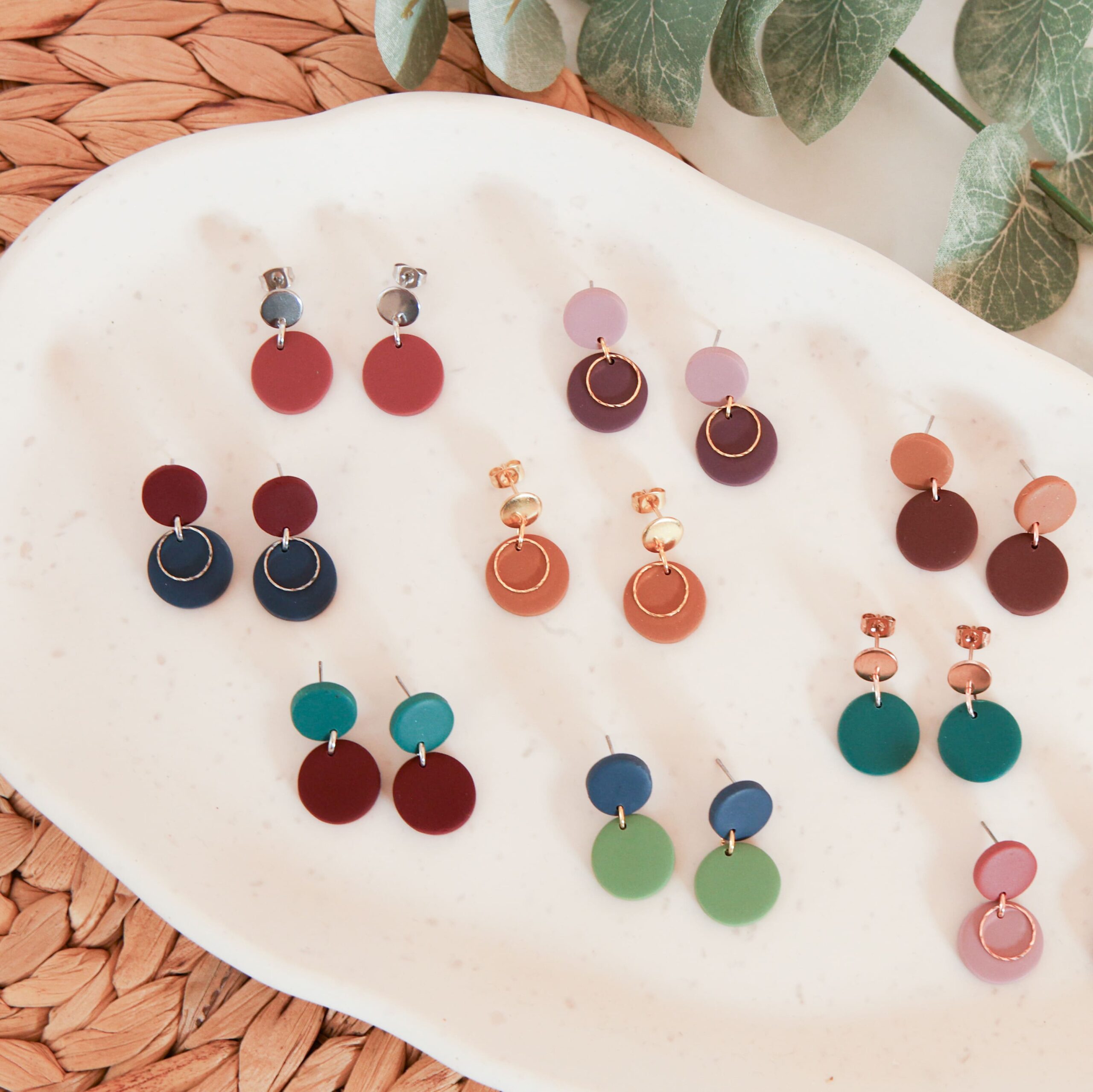 Die Mix & Match Ohrringe kannst du perfekt auf dein Lieblings-Herbstoutfit abstimmen. Dir stehen 9 verschiedene herbstliche Farben zur Verfügung, eine tolle Auswahl aus Trendfarben wie einen hellen Limettengrün, einem Malve-Ton oder einen dunklen Burgunderrot und klassischen Herbstfarben wie Petrol, Schoko- und Karamell-Braun zur Verfügung. Du kannst entweder zwei Farben kombinieren, komplett einfarbige Ohrringe erstellen oder einen Metallstecker in Silber, Gold oder Roségold zu deiner Wunschfarbe auswählen. als besonderes Highlight kannst du auch einen Zierring in deine Metallfarbe dazu kombinieren.