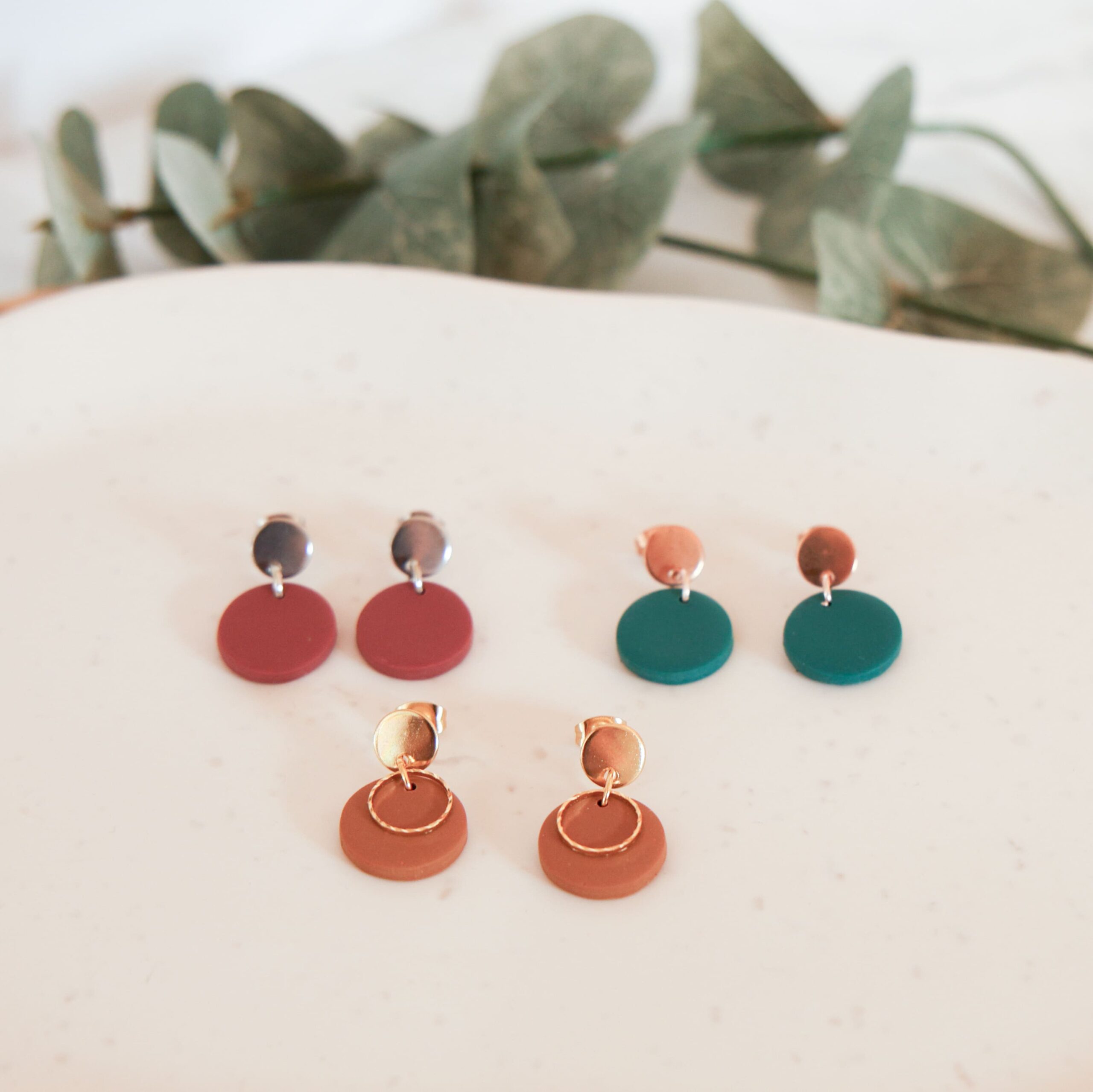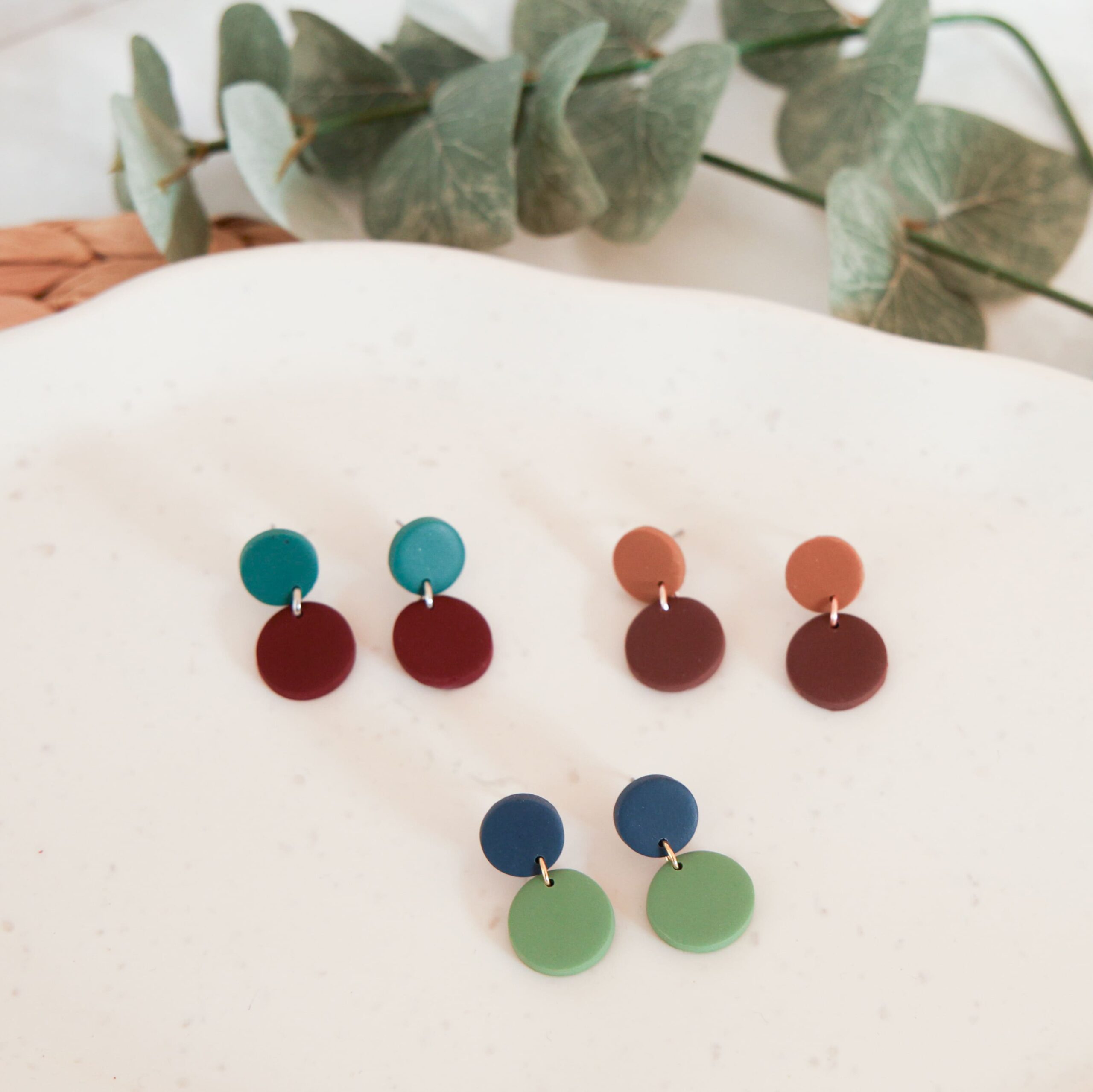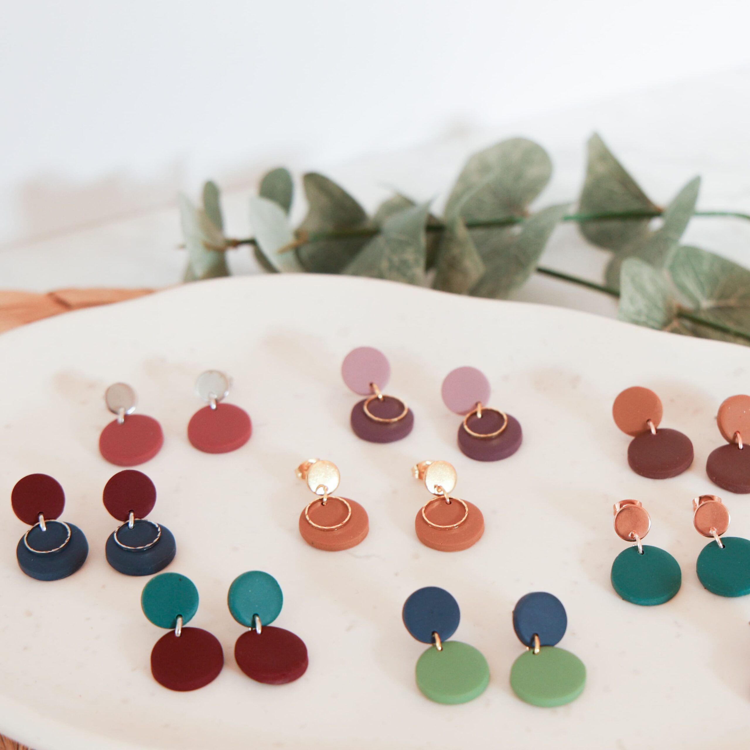 Die Mix & Match Ohrringe kannst du perfekt auf dein Lieblings-Herbstoutfit abstimmen. Dir stehen 9 verschiedene herbstliche Farben zur Verfügung, eine tolle Auswahl aus Trendfarben wie einen hellen Limettengrün, einem Malve-Ton oder einen dunklen Burgunderrot und klassischen Herbstfarben wie Petrol, Schoko- und Karamell-Braun zur Verfügung. Du kannst entweder zwei Farben kombinieren, komplett einfarbige Ohrringe erstellen oder einen Metallstecker in Silber, Gold oder Roségold zu deiner Wunschfarbe auswählen. als besonderes Highlight kannst du auch einen Zierring in deine Metallfarbe dazu kombinieren.