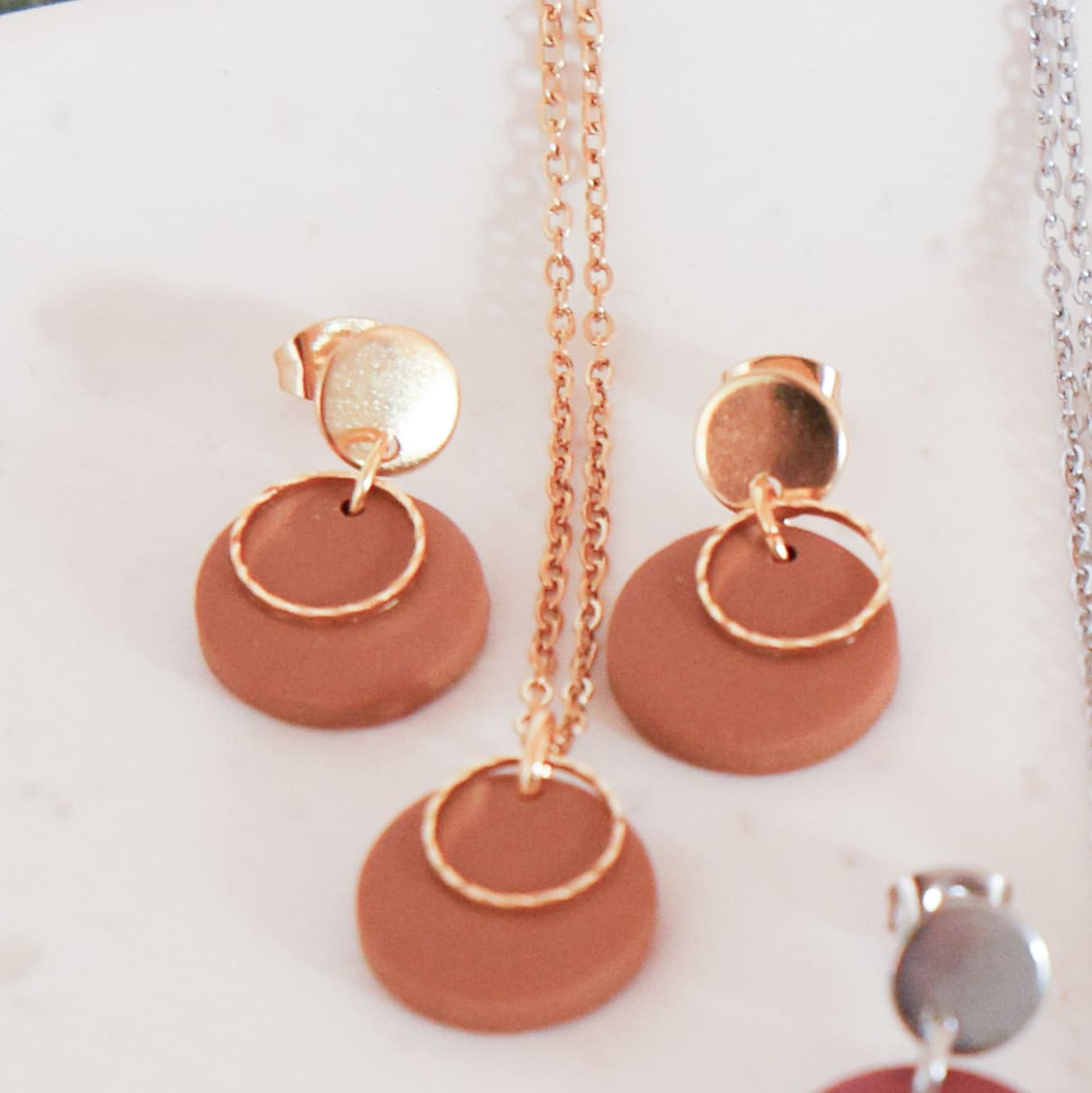 Die farbigen Elemente sind aus Polymer-Ton hergestellt, vielen von der Marke FIMO bekannt. Polymer-Ton ist unglaublich vielseitig und vor allem super leicht, was dir einen hohen Tragekomfort beschert.