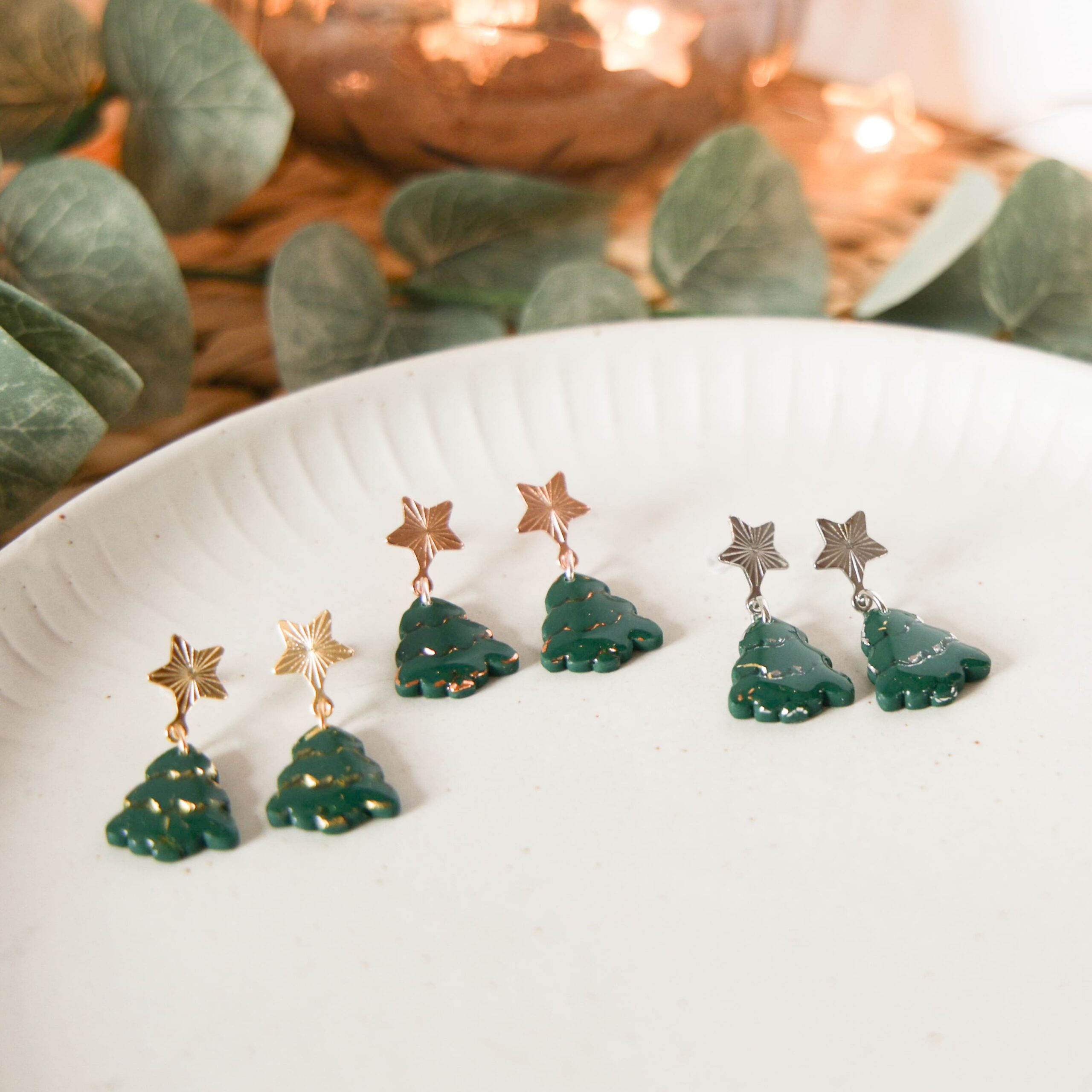 Diese Tannenbaum-Ohrringe sind der Weihnachtsbaum to-go! Sie schimmern wie mit Lametta verziert und haben einen funkelnden Stern an der Spitze! Sind das deine Weihnachtsohrringe?